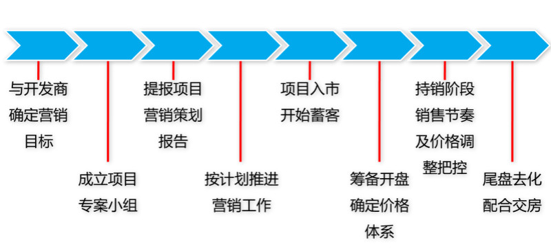 营销事业部组成以项目部为单位,每个项目部均配备营销总监,销售经理,销售主管及多名置业顾问。各项目部骨干均是从事房地产营销工作10年以上的资深人士,依靠科学的数据与分析,及专业的实践经验给客户提供销售各个环节的发展问题并制定最佳解决方案,为客户实现理想项目的价值。