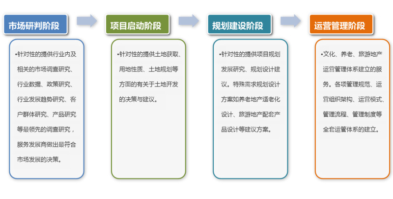 相关产业的无缝导入。文化、养老、旅游地产开发最容易出现规划很丰满运营很骨感的尴尬局面。文养旅事业部在项目规划之初,就可以启动相关业的导入服务,对接国内产业龙头直接或间接导入项目,共同开发,解决后顾之忧。